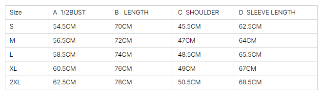 Size: S, M, L, XL, 2XL