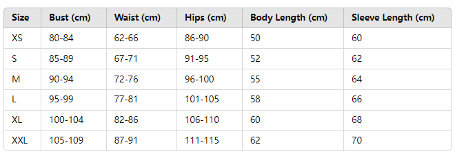 Size: XS, S, M, L, XL, XXL