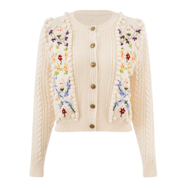 Vintage Fashionable Embroidered Long Sleeve Round Neck Pullover Knitwear
