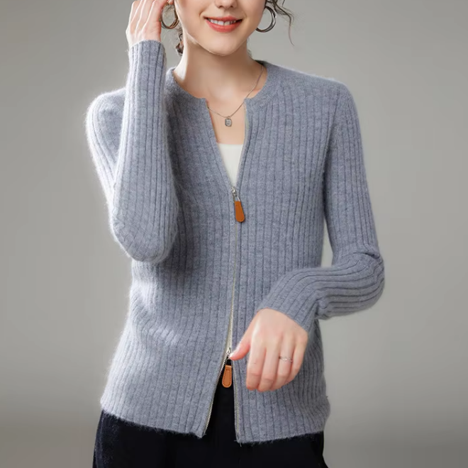 2 Pcs Latest Knitted Rib Full Sleeve Zipper Up Cashmere Knitwear