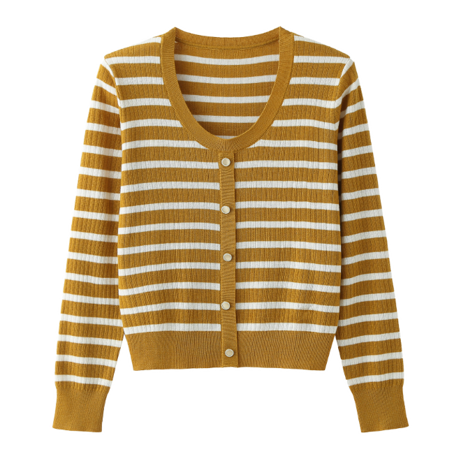 3 Pcs Spring Womens Single Breasted Striped Crew Neck Knitwear
