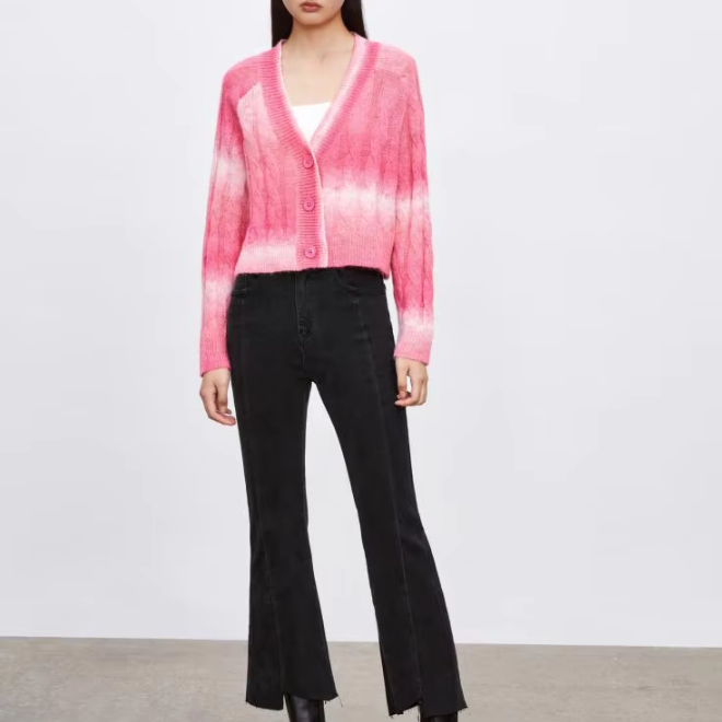 2 Pcs Womens Spring Fashionable Tie Dye Button Knitwear